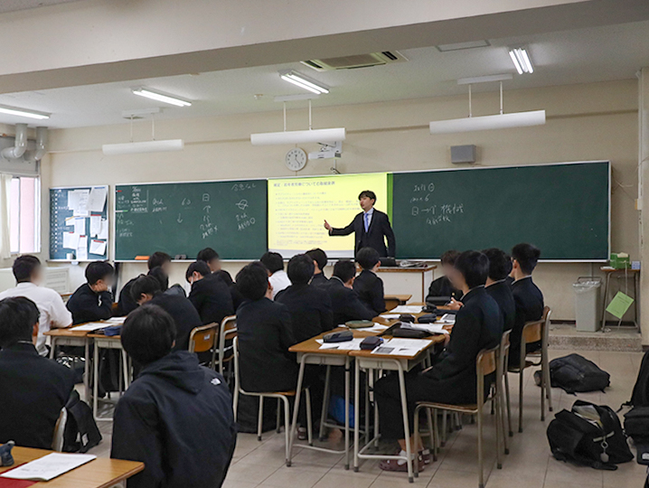 On Thursday, Nov. 27, 2025, we held a legal education lecture for La Salle Junior and Senior High School students. Participants ranged from junior high school third-year students to senior high school first-year students. The lecturers were Brussels associate Hibiki Kimura, Tokyo associates Masaya Sasaki, Takanori Mizuno, and Hiroto Shimmoto.