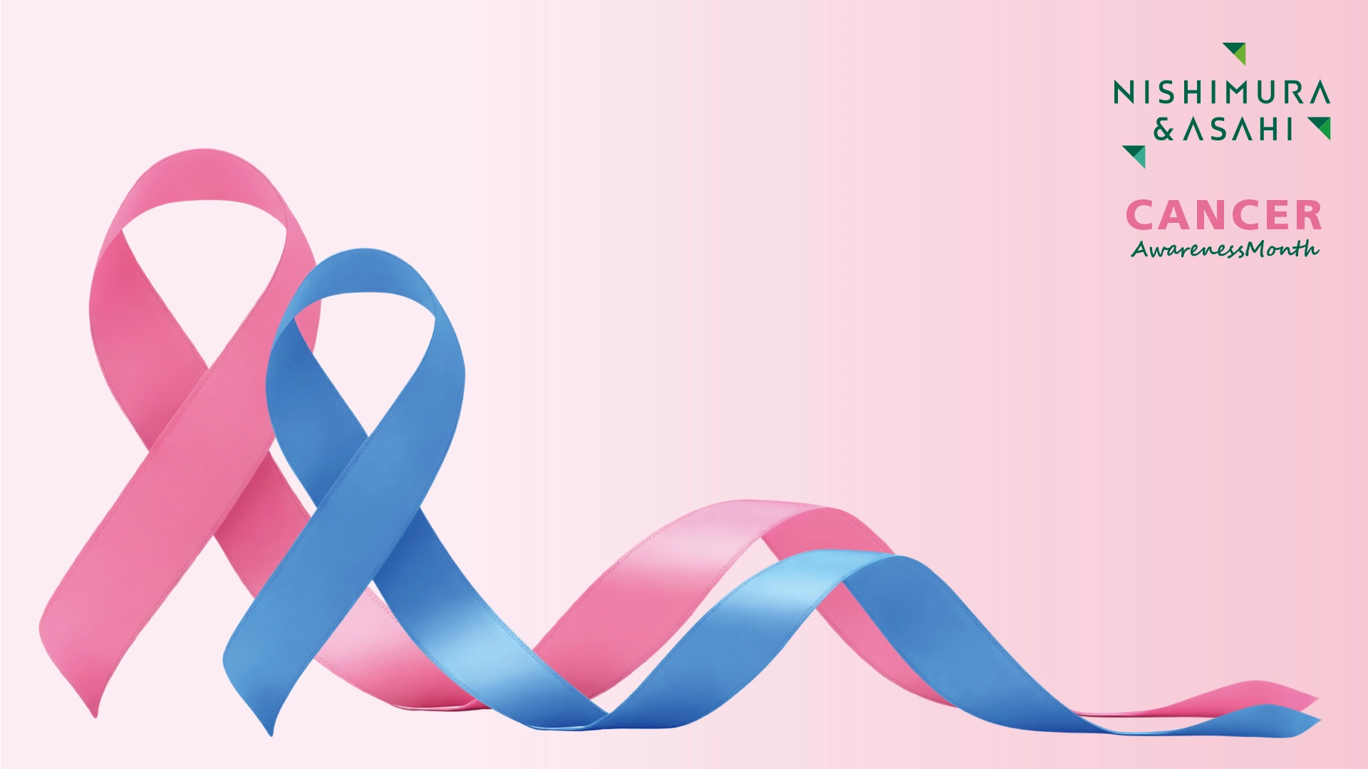 当事務所では、10月のピンクリボン月間に合わせて、乳がん啓発のピンクリボンに加え、今年は新たに大腸がん啓発のブルーリボンも取り入れ、「がん全般に関する正しい知識の普及」と「がん検診の受診促進」を目的とした啓発キャンペーンを実施しました。